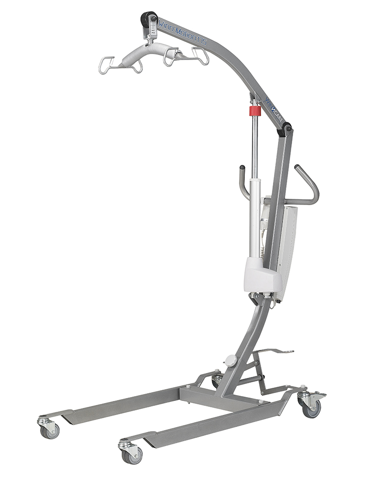 Grúa eléctrica Winn’Motion 175 para elevación de pacientes de hasta 175 kg. Compacta, ligera y segura, con motor LINAK, percha giratoria 360°, parada de emergencia y facilidad de transporte. Ideal para uso en casas, residencias y centros sanitarios.
