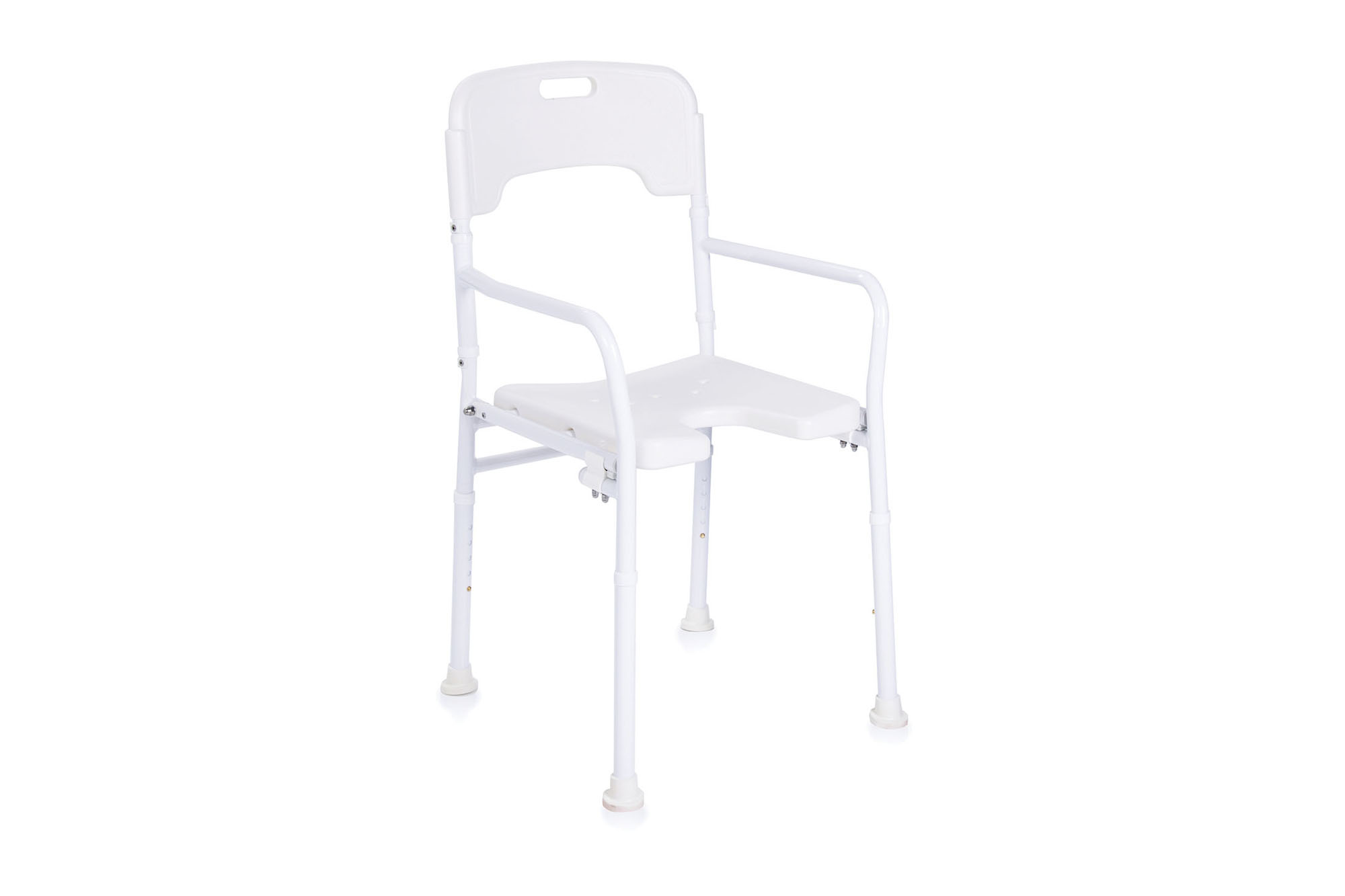La silla de ducha Onda RS826 es un asiento ergonómico diseñado para facilitar la higiene personal en el baño, especialmente indicada para personas con movilidad reducida o que requieren apoyo durante el aseo. Cuenta con una estructura de aluminio pintado resistente a la corrosión y un asiento en forma de U con respaldo, proporcionando comodidad y seguridad durante su uso.