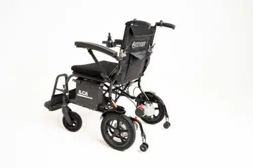 La Teyder Ilca pesa únicamente 19 kg. Por ello, es una de las sillas eléctricas más ligeras del mercado. También se pliega de forma rápida, reduciendo su anchura a 22 cm, lo que facilita guardarla en el coche o en pequeños espacios. Gracias a su diseño compacto, el usuario puede moverla sin esfuerzo y el acompañante puede levantarla o transportarla con mayor facilidad.